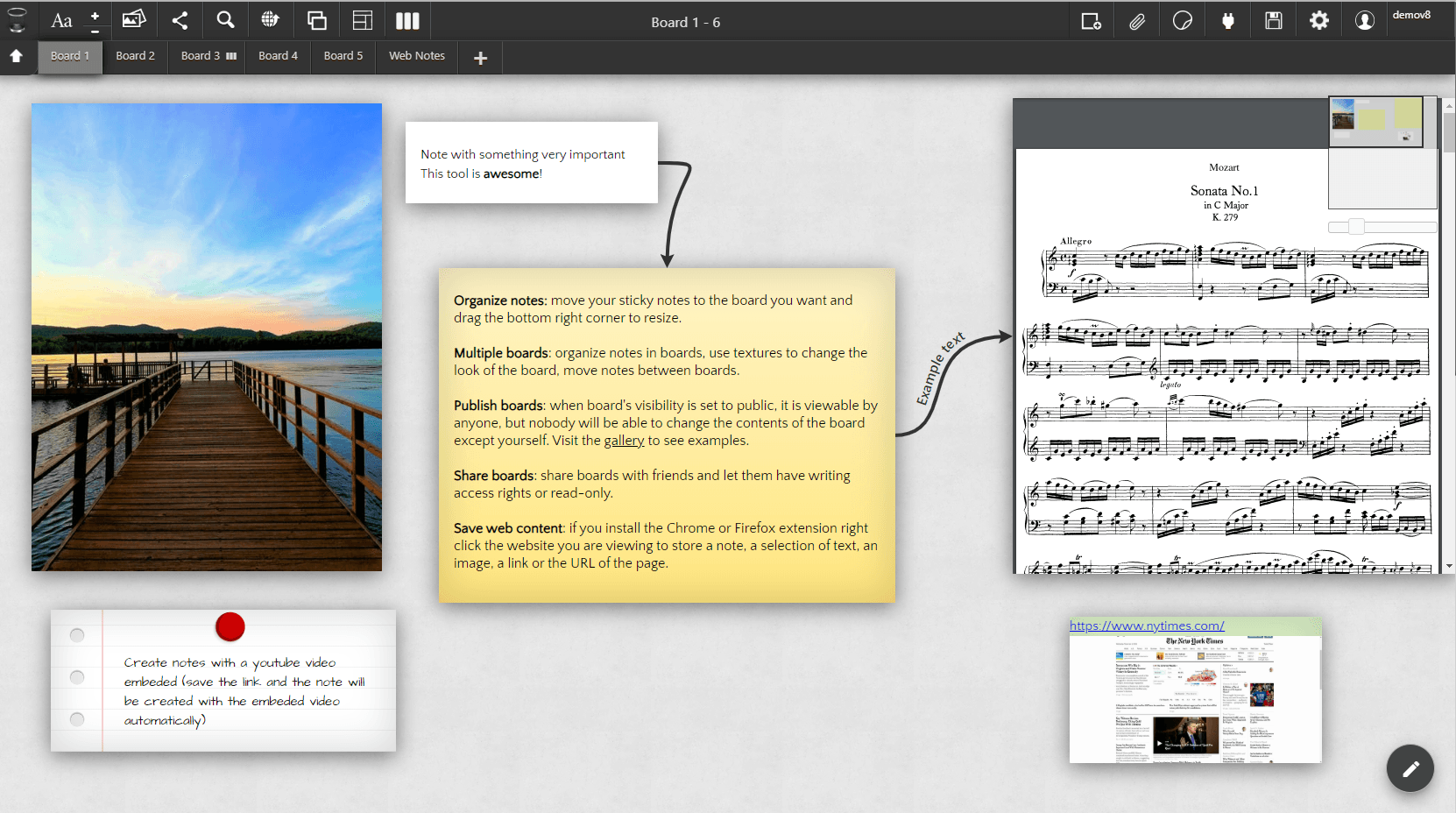 - Multiple selection of notes by drawing a square on the board by pressing the right mouse button and dragging.